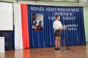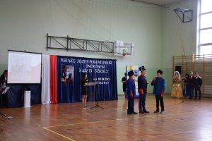 Na koniec oficjalnych uroczystości odbyło się krótkie przedstawienie przybliżające postać księcia Józefa Poniatowskiegow wykonaniu uczniów szkoły pod czujnym okiem polonistek: pani Katarzyny Kulbat, pani Eweliny Przybylskiej oraz pani Agnieszki Zięba).