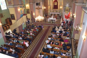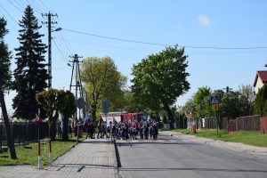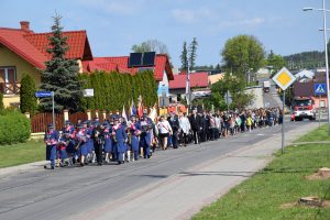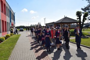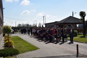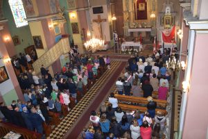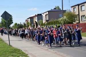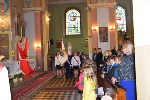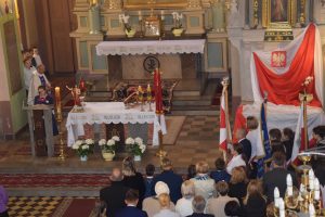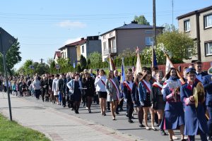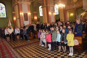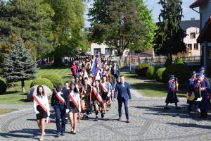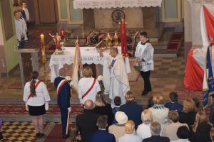 Ceremonia rozpoczęła się od zorganizowanego przejścia orszaku z budynku szkolnego do kościoła na mszę św., podczas której Proboszcz Parafii Sulmierzyce, ksiądz Piotr Bednarz, dokonał poświęcenia sztandaru.