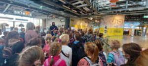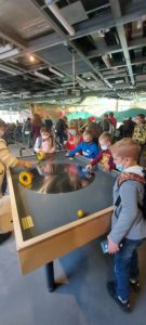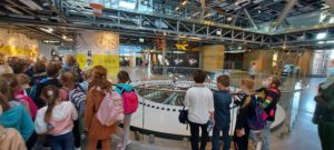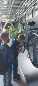Następnie uczniowie udali się do pobliskiego Centrum Nauki Kopernik. Tam obejrzeli wystawę czasową „Rowery”, gdzie z bliska mogli przyjrzeć się tym maszynom, poznać ich budowę, historię, kontekst naukowy i społeczny. W innych punktach Centrum, uczniowie mieli okazję odkrywać interaktywne stacje badawcze, ułatwiające zrozumienie zjawisk fizycznych – mogli się dzięki nim dowiedzieć, jak powstają fale, drgania czy prąd lub jak działa magnes i jak zachowują się płyny. W jeszcze innych miejscach dzieci miały okazję, by ćwiczyć umiejętność pisania i rysowania czy rozwijać motorykę małą.