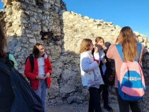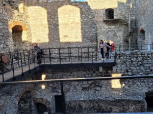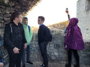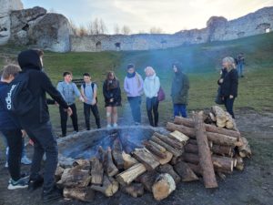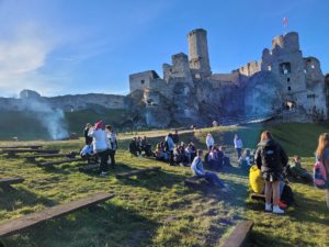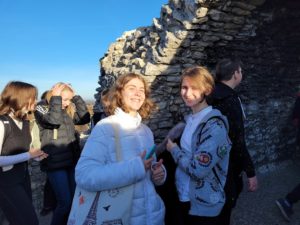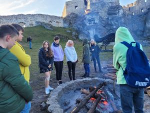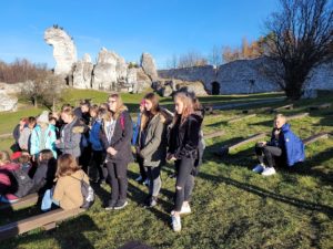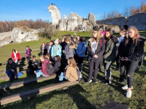Następnie uczniowie wyruszyli do Ogrodzieńca. Dzięki wspaniałej przewodniczce, która oprowadziła wszystkich po ruinach zamku, uczniowie nie tylko zobaczyli ciekawą architekturę, ale i dowiedzieli się wielu interesujących rzeczy. Najbardziej wyczekiwanym punktem wizyty w zamku było wejście na sam szczyt wysokiej wieży, z której można było podziwiać cudowne widoki.