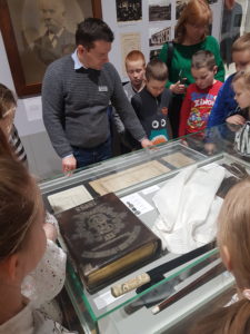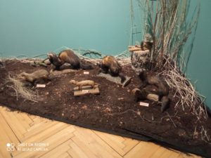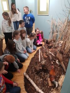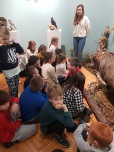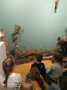 W dniu 5 kwietnia uczniowie drugich klas SP w Sulmierzycach udali się na wycieczkę do Muzeum Regionalnego im. Stanisława Sankowskiego w Radomsku. Tam mogli obejrzeć wystawę „Zwierzęta wokół nas” – nową ekspozycję czasową ze zbiorów Działu Przyrody Muzeum Częstochowskiego. Kustosz Działu – Pani Elżbieta Janik opowiedziała o ekspozycji. Na wystawie został zaaranżowany las, czyli pierwotne środowisko zwierząt. Były ptaki leśne: dzięcioł, krzyżodziób i sikorki, a także wróbel domowy, jerzyk, kawka i dzwoniec oraz typowe ptaki błotne, czyli czajka, czapla i żurawie. Na ekspozycji oprócz ptaków można było zobaczyć także płazy: rzekotkę drzewną, żabę wodną, ropuchę zieloną czy żabę trawną. Ciekawą grupę stanowiły gady, a wśród nich zaskroniec zwyczajny – najbardziej pospolity wąż w naszym kraju, niejadowity, charakteryzujący się żółtymi plamami skroniowymi czy żmija zygzakowata – jedyna jadowita żmija w Polsce oraz inne zwierzęta, takie jak: dzika, kunę, kreta czy tchórza. Następnie uczniowie obejrzeli stałe wystawy Muzeum: