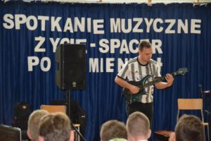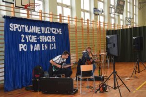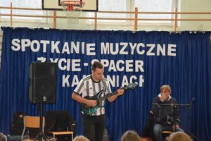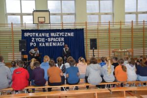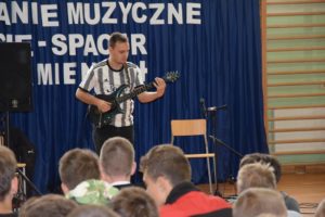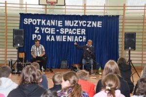 W piątek (30.09.2022r.) w naszej szkole odbyło się spotkanie muzyczne z panem Jackiem Musiatowiczem oraz jego synem Michałem. „Zycie- spacer po kamieniach”, bo taki tytuł nosi prezentacja, nawiązuje do trudów życia codziennego. Recital jest sumą obserwacji życia prywatnego i artystycznego, jest programem motywacyjnym, mówiącym o tym, że żadna sytuacja życiowa nie powinna skłonić młodego człowieka do sięgania po używki.