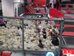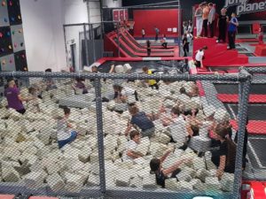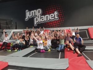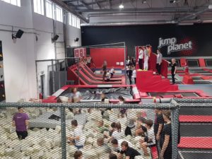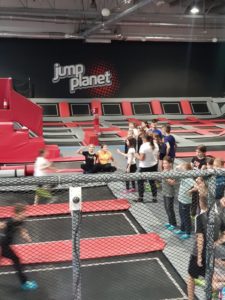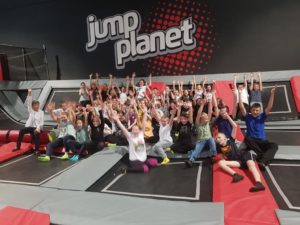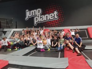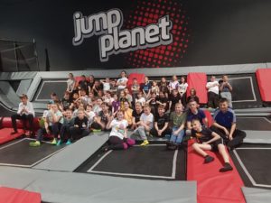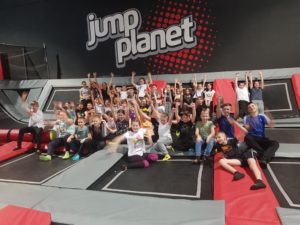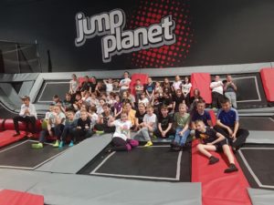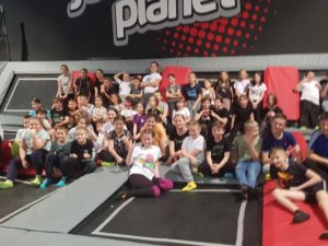 Po niezwykłej przygodzie w teatrze przyszedł czas na rozrywkę sportową w parku trampolin. Uczniowie mieli aż dwie godziny, aby wyszaleć się, wyskakać, ale też razem spędzić czas i zintegrować się. Była ku temu doskonała okazja, bo instruktorzy z parku trampolin zorganizowali dla naszej grupy świetne zabawy, między innymi grę w piłkę