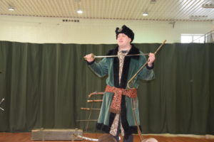 Pokaz nosił tytuł „Staropolski Sarmatyzm i Rzeczpospolita Szlachecka”. Uczniom przybliżono staropolską kulturę i obyczaje epoki szlacheckiej. Zaprezentowano tradycyjny strój sarmaty, uzbrojenie i metody walki. Uczestnicy mogli się dowiedzieć jak i za co w tamtych czasach skazywano czarownice oraz jakie dawniej stosowano tortury. Najodważniejsi poddani zostali torturom na krześle inkwizycyjnym.