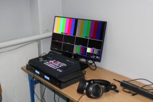 W ramach projektu „Laboratoria przyszłości” szkoła pozyskała sprzęt niezbędny do utworzenia studia filmowo-telewizyjnego dla zainteresowanych uczniów. W skład wyposażenia wchodzą: aparat fotograficzny i kamera, statywy, oświetlenie, monitory, mikser video, gimball oraz „greenscrean”.W styczniu tego roku rozpoczęły się prace nad przygotowaniem odpowiedniego pomieszczenia i rozlokowaniu w nim w/w sprzętu.Na zajęcia rozwijające zainteresowania fotografią i filmem zapisali się pierwsi uczniowie. Podczas poczatkowych spotkań mieli oni okazję zapoznać się ze sprzętem i jego funkcjami. Podjęli pierwsze próby wyważania Gimballa, wykonywali próbne zdjęcia i krótkie nagrania filmowe.