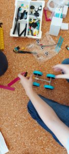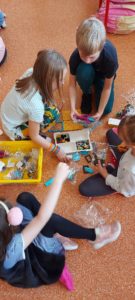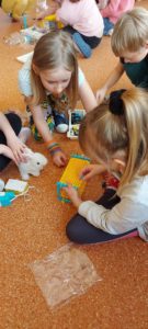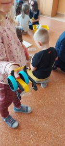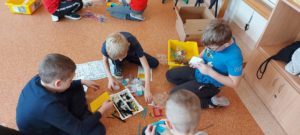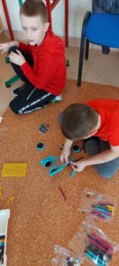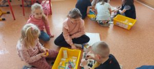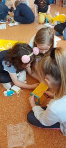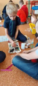 Uczniowie podczas pierwszych zajęć pracowali w grupach, podejmując pierwsze próby budowania.