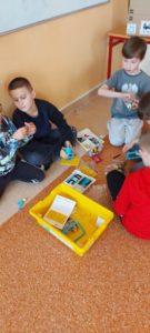 Podczas pierwszego spotkania uczniowie klasy I b mieli okazję zapoznać się z zestawem lego oraz oprogramowaniem służącym do konstruowania budowli. Poznali możliwości wykorzystania klocków i stworzenia niesamowitych konstrukcji.
