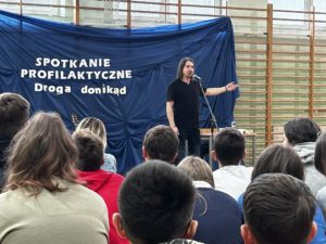 25 października odbyło się kolejne spotkanie profilaktyczne, które w naszej szkole organizowane są, co roku. Tym razem z prosto z Krakowa przyjechał do nas wieloletni basista Oddziału Zamkniętego, pan Grzegorz Stępień.