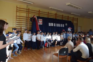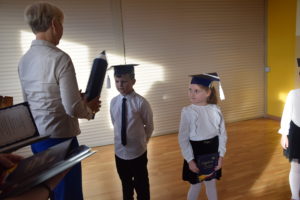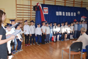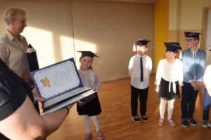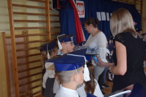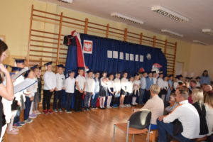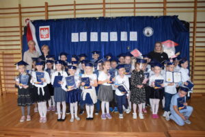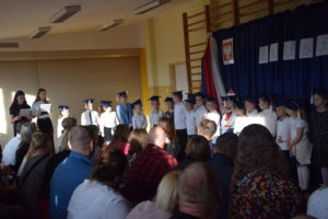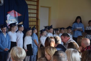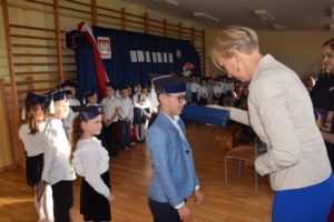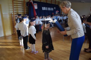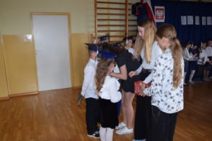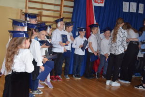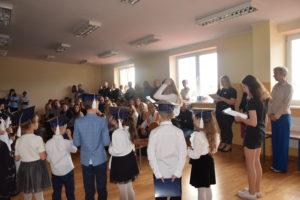 Wszyscy uczniowie otrzymali pamiątkowe dyplomy i plakietki z logo patrona szkoły.