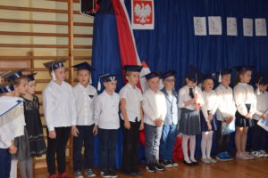 Uczniowie klas pierwszych w obecności rodziców, dyrekcji, wychowawców i koleżanek z siódmej klasy, recytowali wiersze, śpiewali piosenki i starali się udowodnić, że zasługują na miano uczniów naszej szkoły.