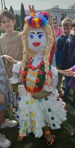Najpierw w klasach wraz z wychowawcami uczniowie przygotowywali kukły symbolizujące odchodzącą zimę, potem udali się na grę terenową, aby integrować się z mieszkańcami Sulmierzyc, „szukać” śladów wiosny i utrwalać zachowania ekologiczne. Zarówno tworzenie ekologicznej Marzanny, jak i gra terenowa to nawiązanie do działań, jakie dzieci podejmowały, będąc w Grecji w ramach projektu Erasmus +. Pogoda dzisiaj była równie ładna jak w słonecznej Grecji, a uczniowie uczestniczący w projekcie pokazali swoim kolegom z klasy, jak radzić sobie z zadaniami w czasie gry terenowej Wszyscy uporali się z nimi wyjątkowo szybko. Po powrocie do szkoły została spalona Marzanna i uczniowie poznali wyniki konkursu na najciekawszą kukłę, najbardziej ekologiczną i oczywiście wykonaną samodzielnie w czasie zajęć szkolnych, a trzeba przyznać, że były one różnorodne i pięknie się prezentowały.