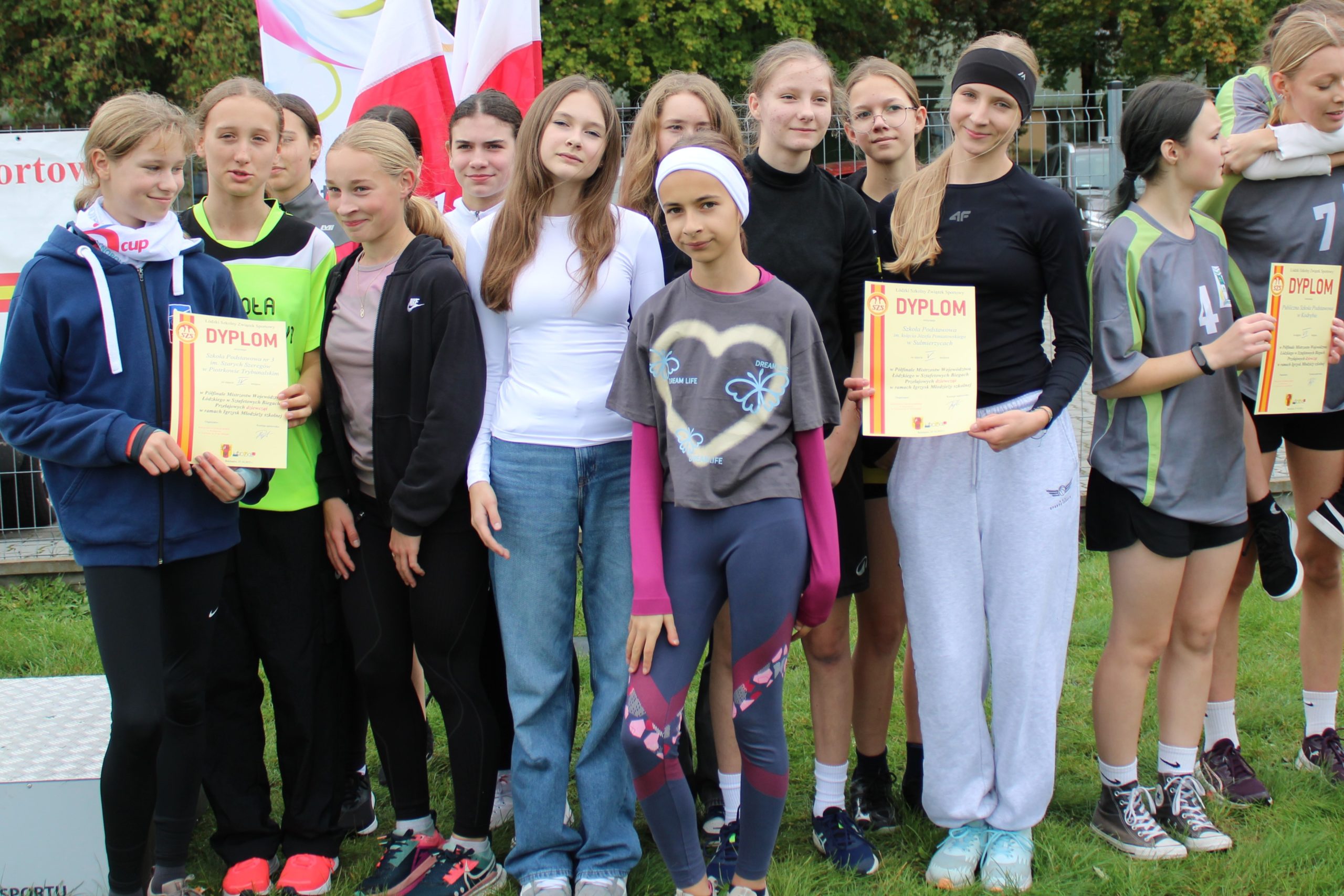 Nasze dziewczęta powtórzyły sukcesy z poprzednich lat w obu kategoriach wiekowych. Wygrały z dużą przewagą zdobywając złote medale. Również chłopcy z klas 4-6 wygrali swój bieg i także oni zdobyli tytuły mistrzów powiatu. Ich starsi koledzy tym razem zajęli miejsce piąte. Trzy nasze zwycięskie sztafety uzyskały awans na zawody wojewódzkie.