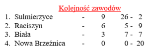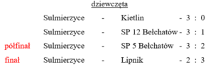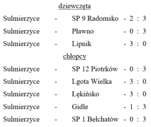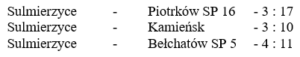 W turnieju rozgrywanym systemem każdy z każdym pokonały SP Raciszyn 9 : 0, SP Nowa Brzeźnica 11 : 0 i SP Biała 6 : 2.