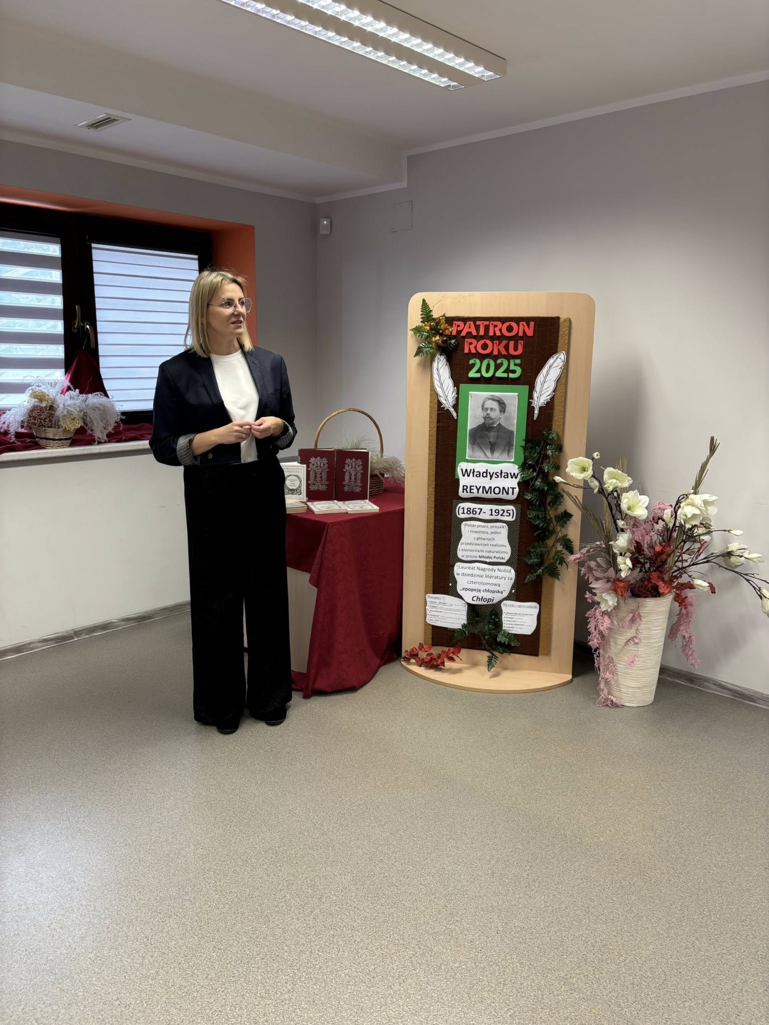 W związku z tym uczniowie klas ósmych wzięli udział w wyjątkowej lekcji języka polskiego, która odbyła się w Gminnej Bibliotece Publicznej im. Filipa Sulimierskiego w Sulmierzycach i poświęcona była Władysławowi Stanisławowi Reymontowi. Podczas spotkania młodzież poznała sylwetkę pisarza, jego najważniejsze dzieła oraz wiele ciekawostek z życia noblisty. Uczniowie z zainteresowaniem odkrywali fakty o twórcy bliskim naszemu regionowi – Reymont urodził się bowiem w Kobielach Wielkich, niedaleko Radomska.