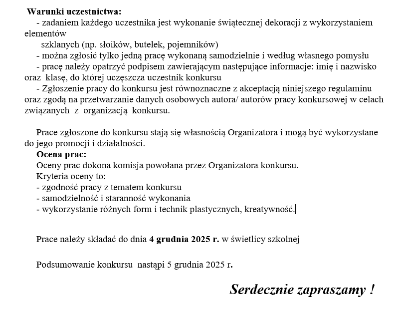 Regulamin konkursu plastycznego „Święta zamknięte w szkle”