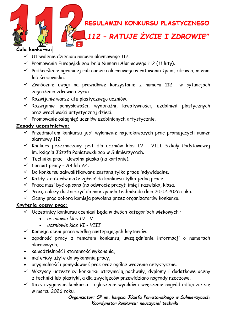 REGULAMIN KONKURSU PLASTYCZNEGO „112 – RATUJE ŻYCIE I ZDROWIE”