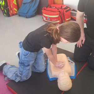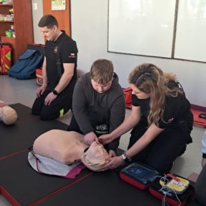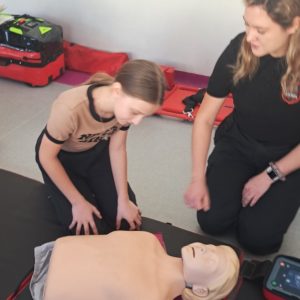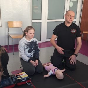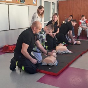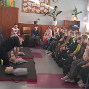 Podczas zajęć strażacy omówili podstawowe zasady udzielania pierwszej pomocy, zaprezentowali resuscytację krążeniowo-oddechową (RKO) a także pokazali, jak w praktyce korzystać z defibrylatora AED. Uczniowie mieli również okazję przećwiczyć postępowanie w przypadku urazów kończyn (np. podejrzenia złamania), nauczyć się prawidłowego opatrywania ran, zasad postępowania przy oparzeniach i zakrztuszeniach, a także ułożenia poszkodowanego w pozycji bocznej bezpiecznej.