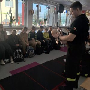 Na zaproszenie szkoły odpowiedzieli druhowie z Ochotniczej Straży Pożarnej w Sulmierzycach, którzy w przystępny i bardzo interesujący sposób przekazali uczniom najważniejsze zasady ratowania zdrowia i życia oraz właściwego reagowania